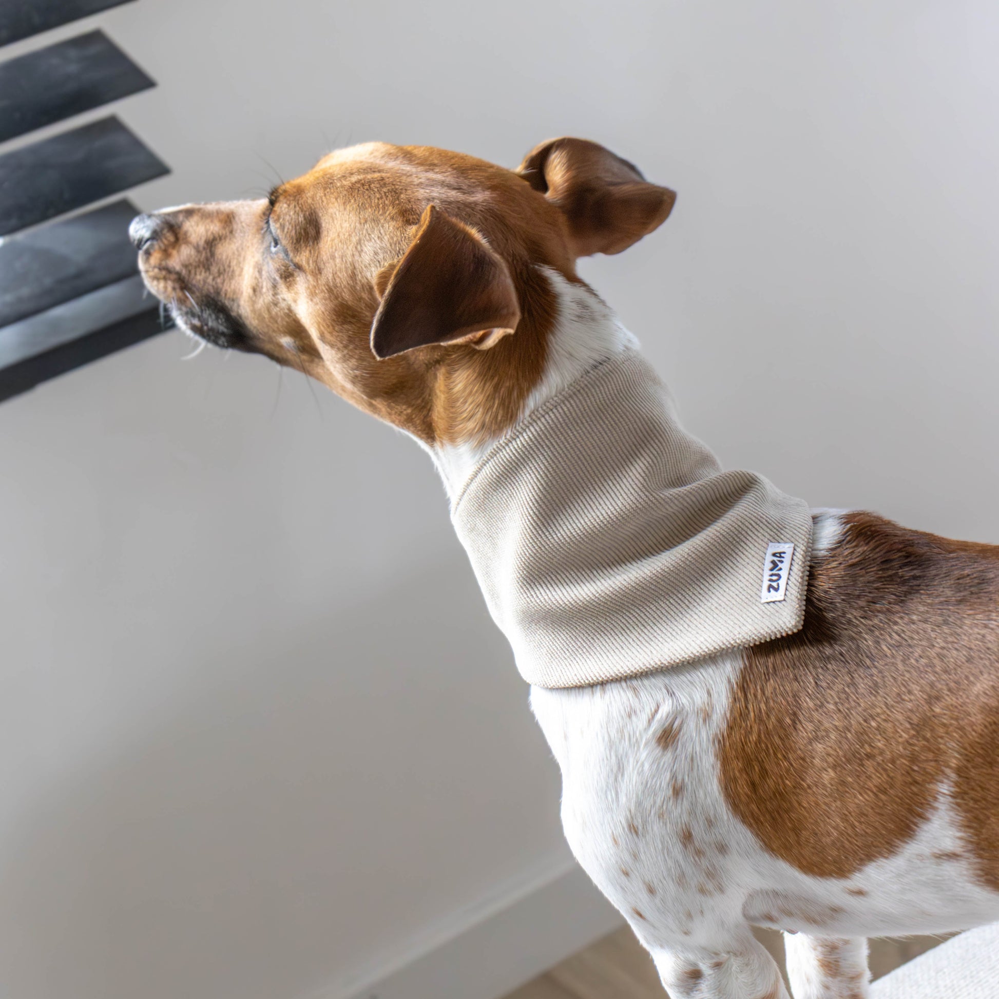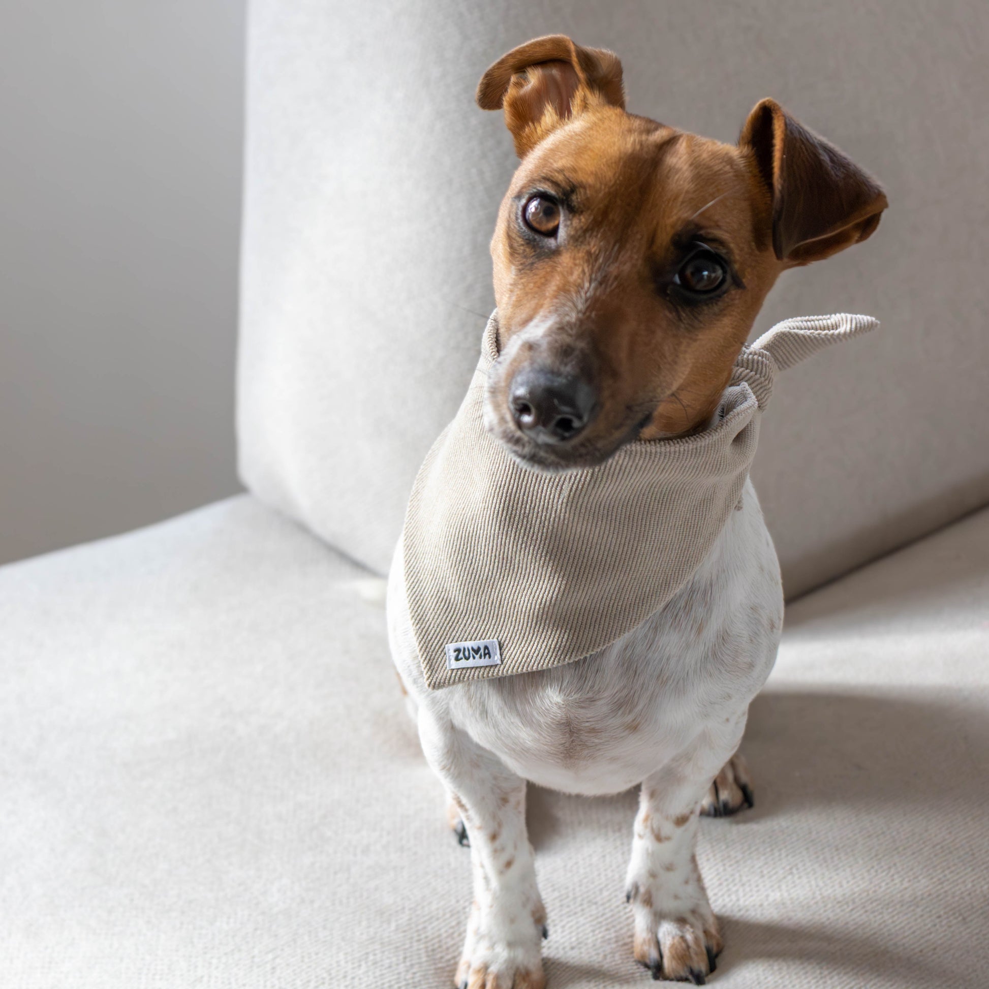 Geef je viervoeter een elegante look met onze Hondenbandana Sand! Gemaakt van zachte corduroy in een beige kleur met smalle rib, is deze bandana perfect voor fashionable hondjes.