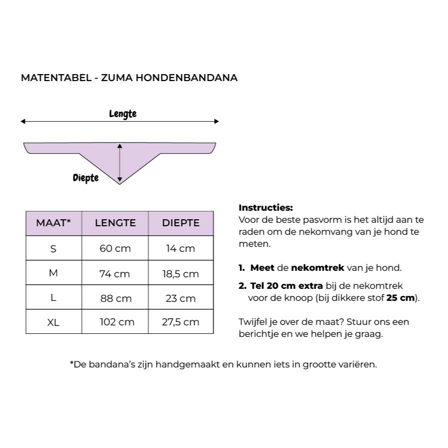Disclaimer: Hou altijd toezicht als de bandana wordt gedragen. Als je weet dat je hond zich vuil gaat maken, doe even de bandana af. Zo blijft hij langer mooi.