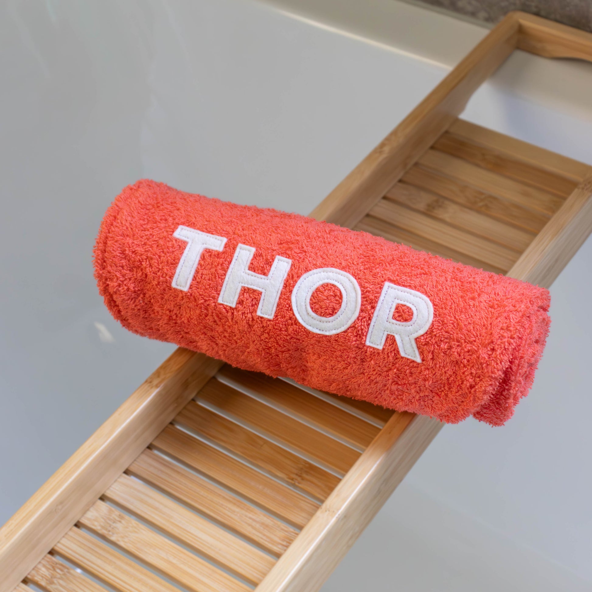 Hondenhanddoek gepersonaliseerd koraal