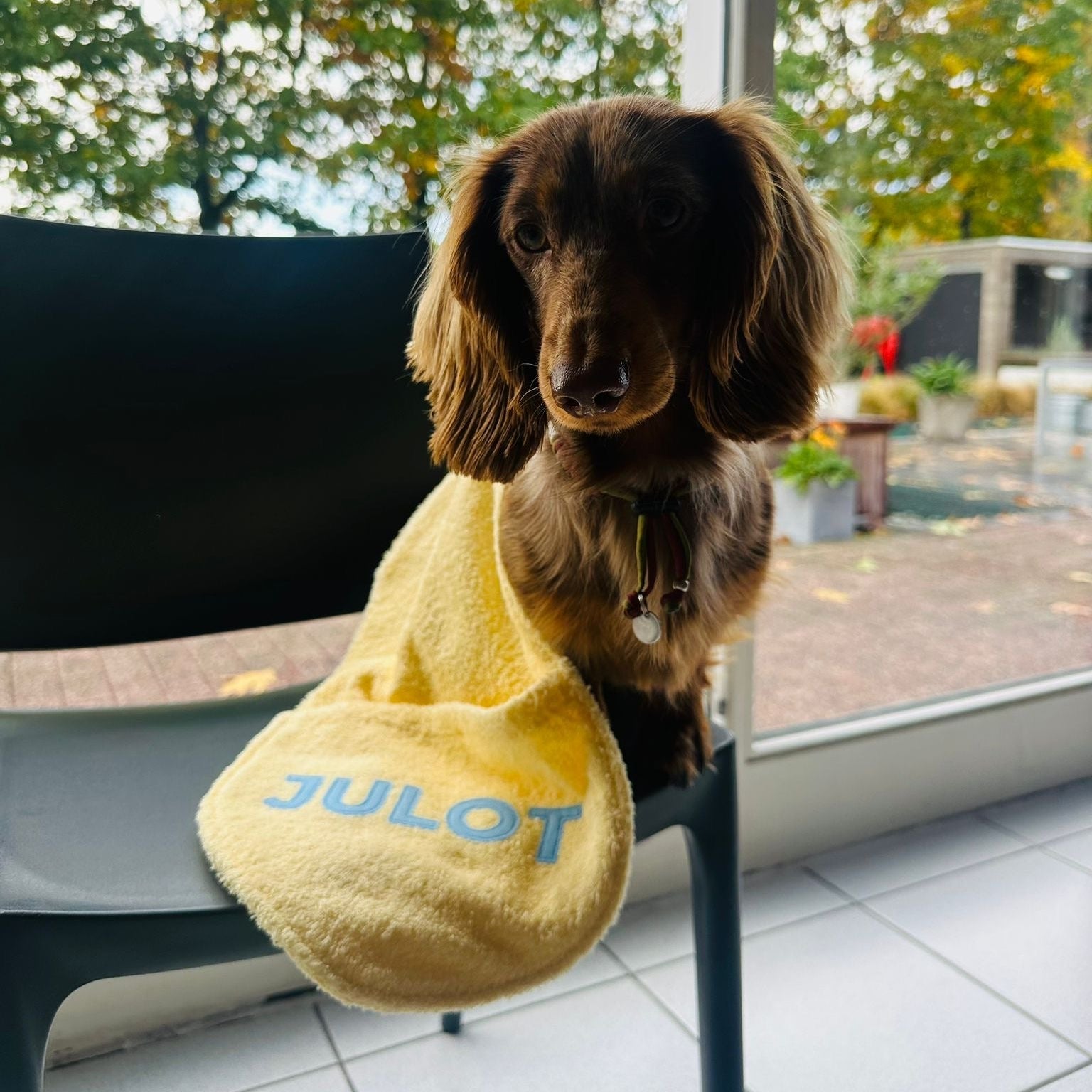 De hondenhanddoek is beschikbaar in 3 formaten. Kies de kleur voor de naam van je hondje en maak jouw hondenhanddoek uniek. Omwille van plaats, mag de naam maximaal 6 letters bevatten. Heeft je hond een langere naam? Stuur ons een berichtje en we kijken wat mogelijk is.