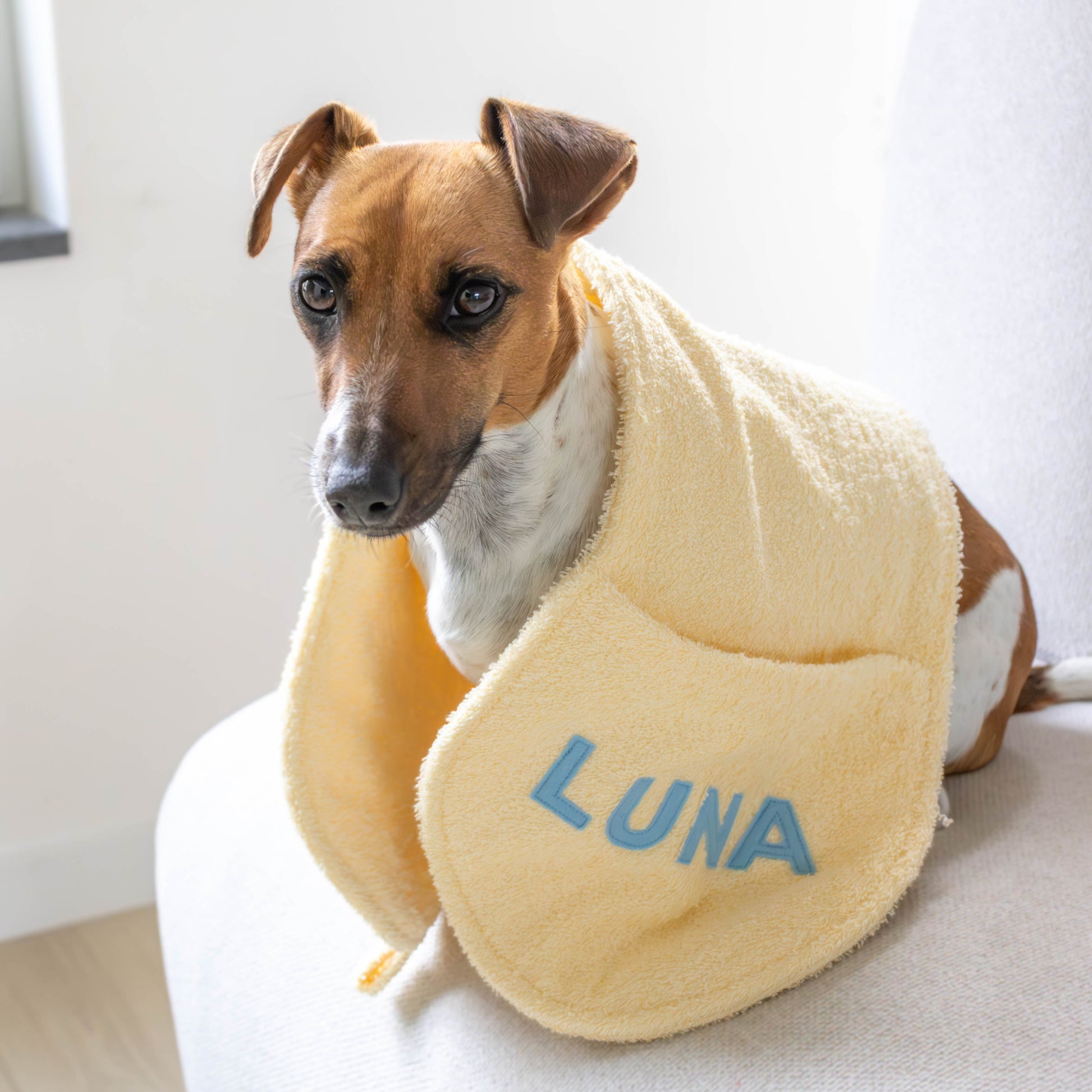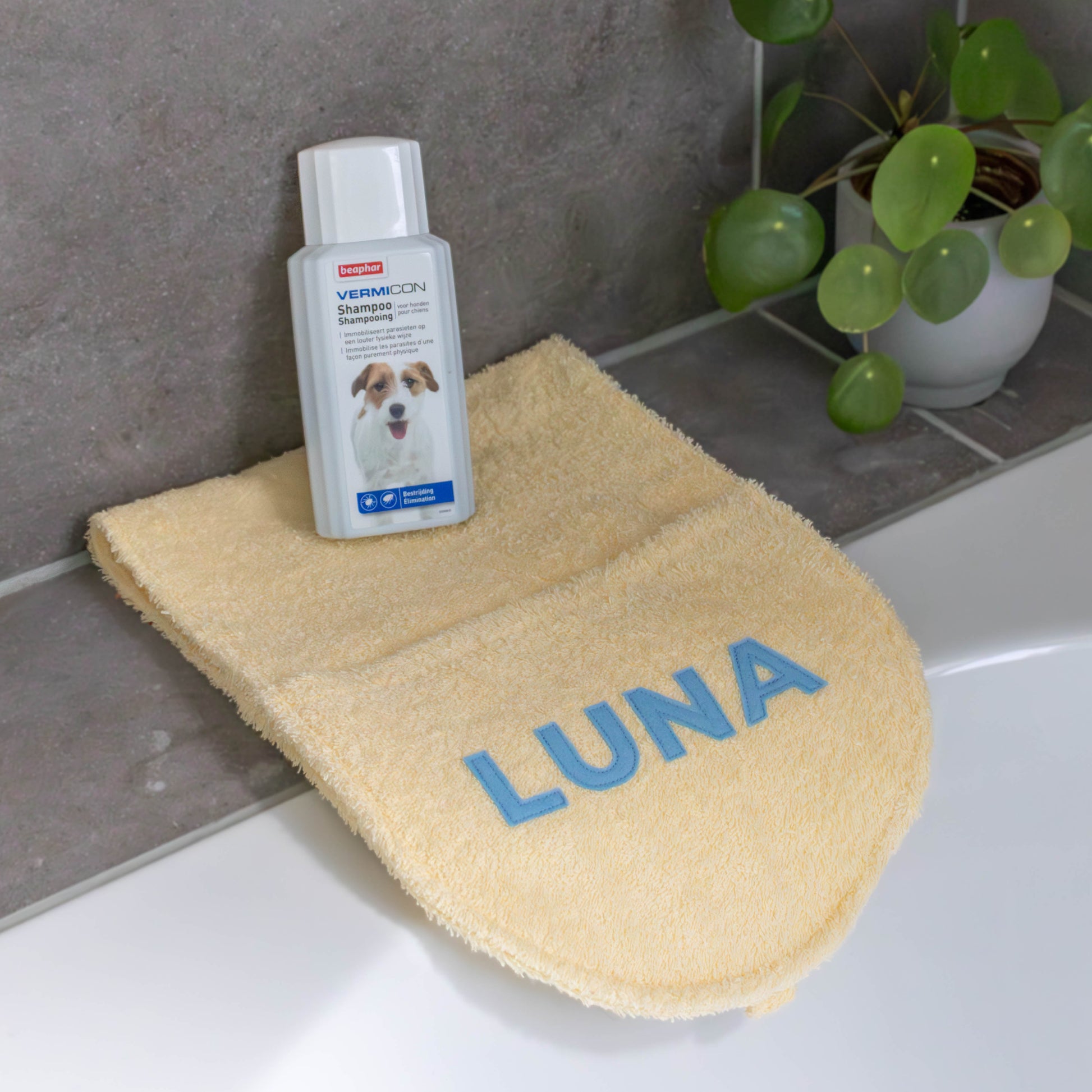 Hondenhanddoek gepersonaliseerd pastel geel