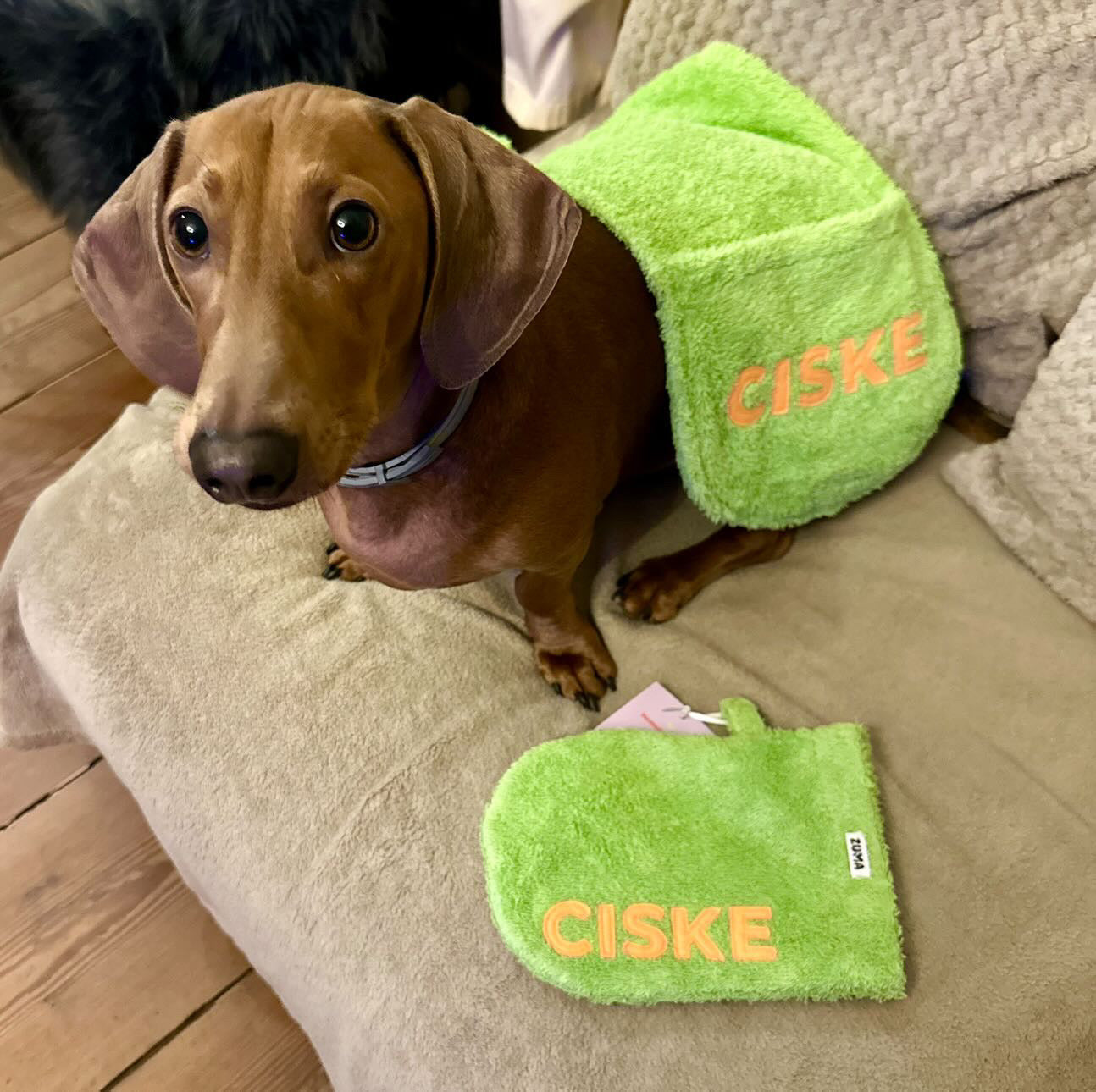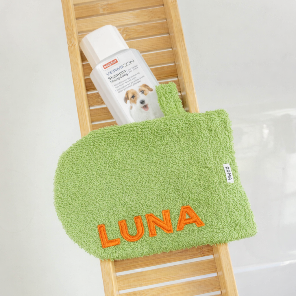 Kies de kleur van de washand en de kleur van de naam van je hondje en maak jouw washandje uniek. Omwille van plaats, mag de naam maximaal 6 letters bevatten. Heeft je hond een langere naam? Stuur ons een berichtje en we kijken wat mogelijk is.